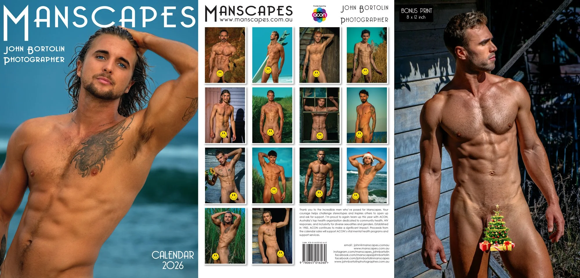 Byron Bay based artist John Bortolin's passion for landscapes and male nudes has come together in an exquisite 2026 Calendar to raise awareness of men's mental health and building support for men in need.